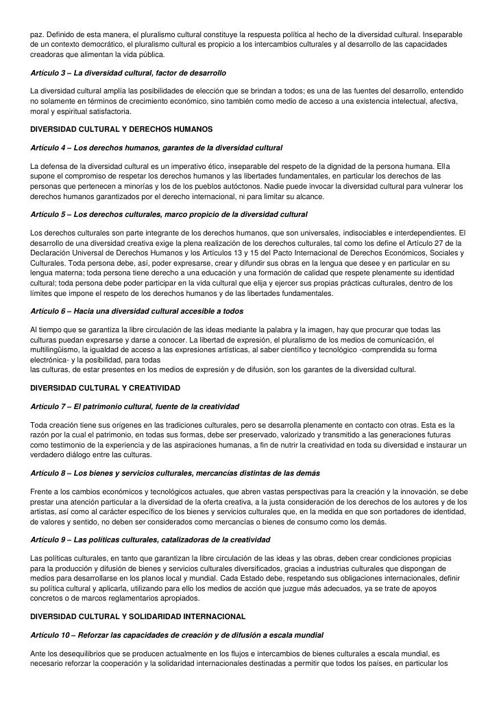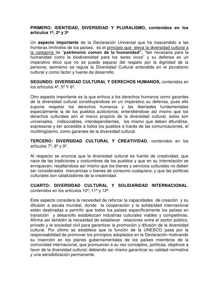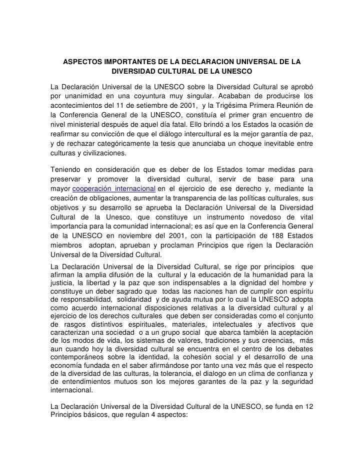 Aspectos importantes declaracion universal de la diversidad cultural