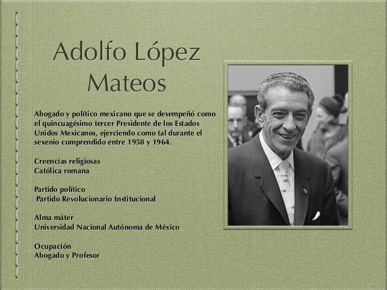 Infografia 1 ADOLFO LOPEZ MATEOS Presidente de México (19581964). Partido político Partido