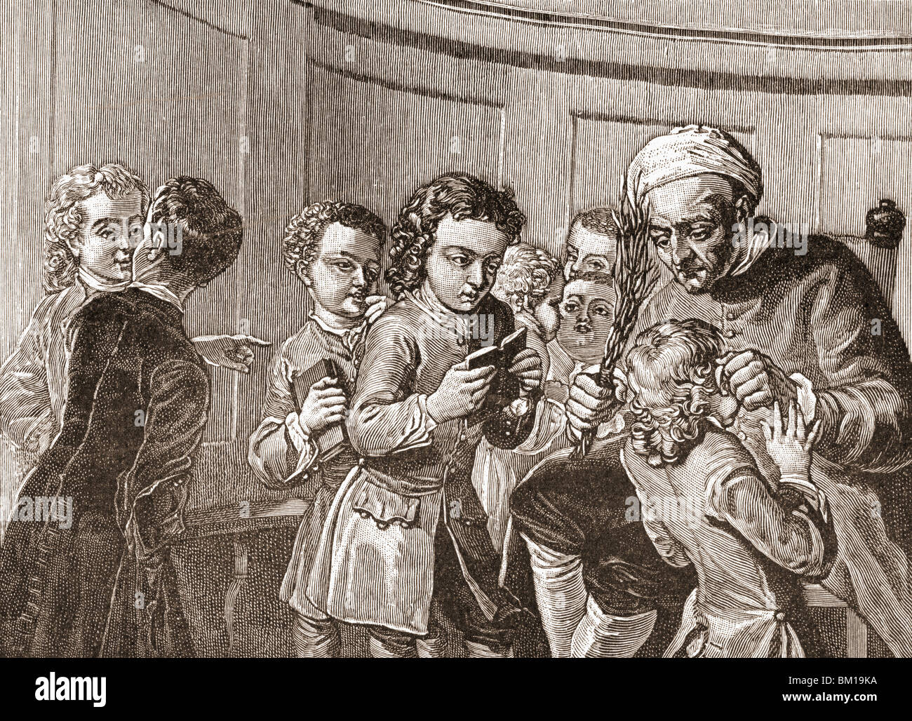 Un aula escolar en los primeros años del siglo XVIII Fotografía de stock Alamy
