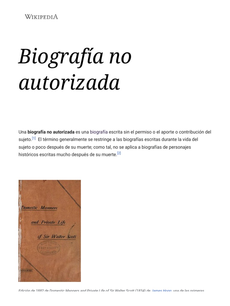 Una biografía no autorizada de ti mismo. La pregunta que todos podríamos hacernos es si alguien tendría la libertad legal de escribir sobre nosotros. La respuesta es que sí, bajo el amparo de la libertad de expresión y el derecho de información, si esta es veraz. Es algo que choca frontalmente con el derecho al honor, a la intimidad.