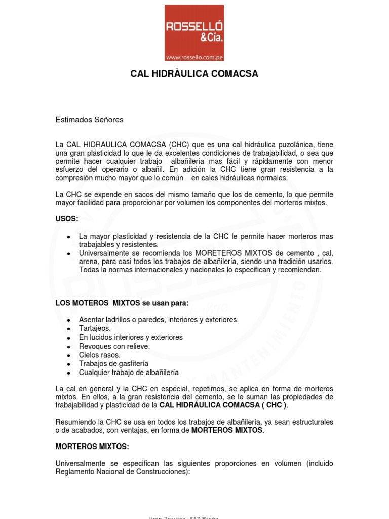 Cal Hidraulica Ficha Tecnica Cemento Ingeniería de construcción