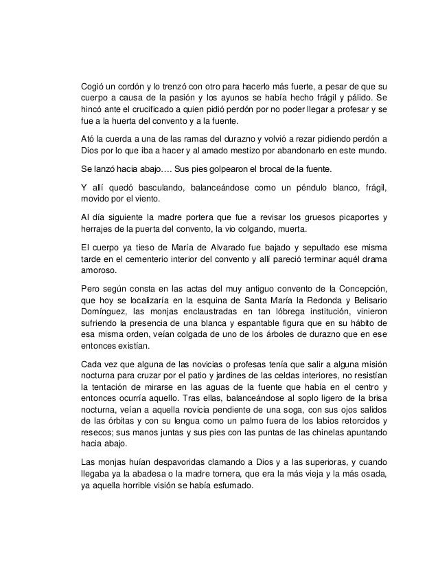 Leyenda de la monja. Hace muchos años vivieron unos hermanos de apellido Ávila, sus nombres eran alfonso, gil y maría. María era una. joven muy bella y por lo cual tenía muchos pretendientes, cosa que a sus hermanos no les gustaba mucho eran muy celosos y no querían que ella tuviera novio así que se dedicaban a espantar a todos sus.