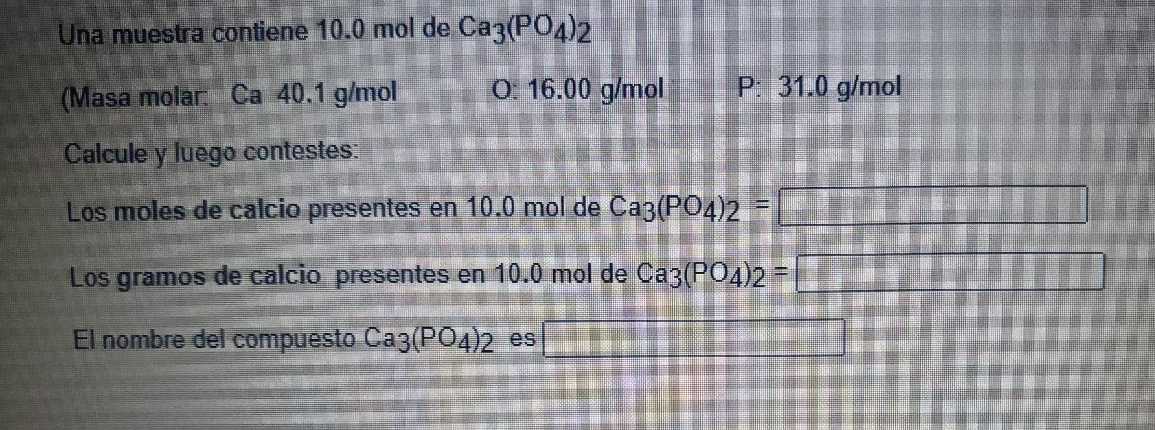 Solved Una muestra contiene 10.0 mol de Ca3(PO4)2 (Masa
