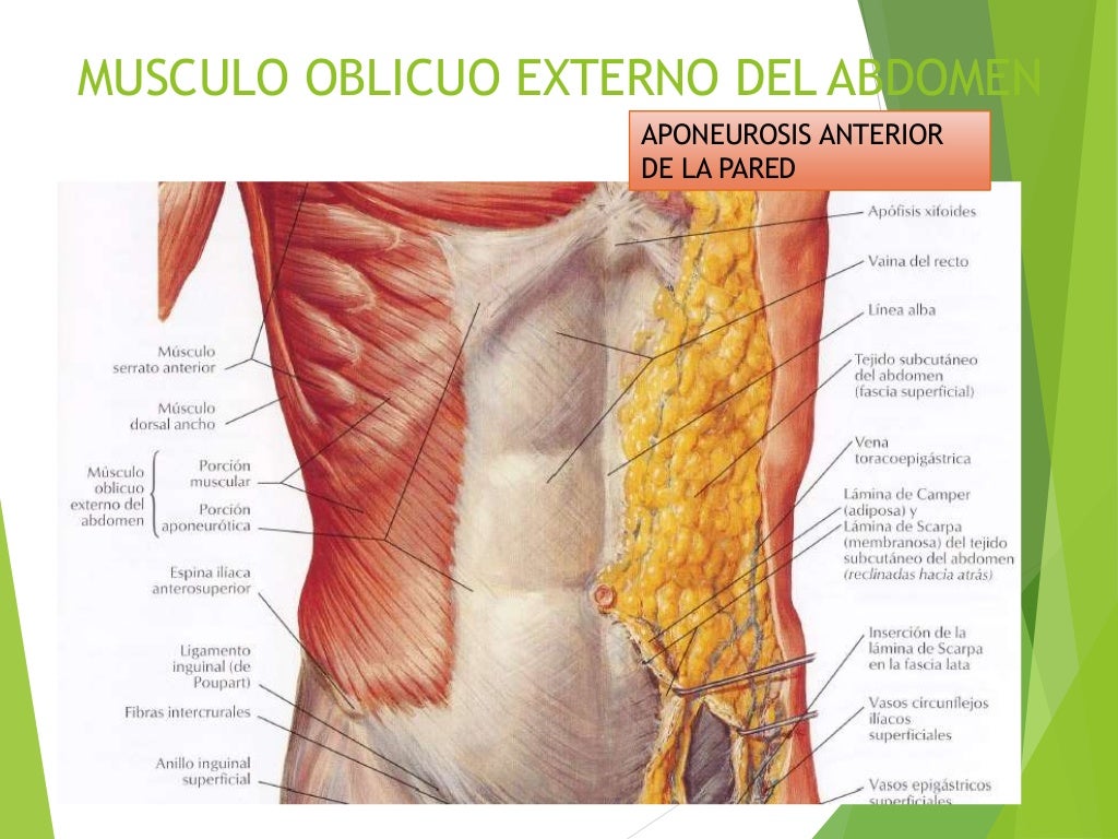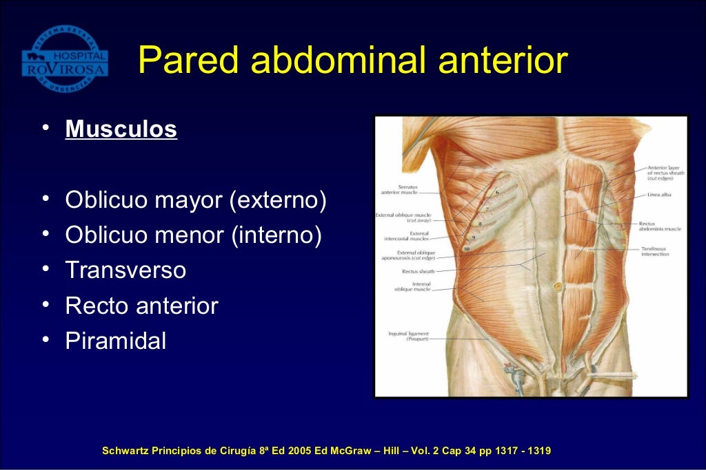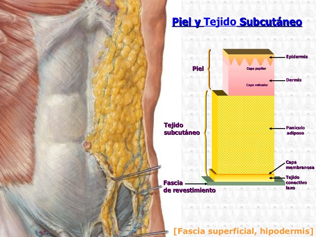 Planos superficiales Están constituidos por piel, panículo adiposo, fascia superficial, tejido celular subcutáneo donde se. Los músculos anchos de la pared abdominal son de superficie a profundidad: el músculo oblicuo externo (oblicuo mayor), el músculo oblicuo interno (oblicuo menor) y el músculo transverso del.
