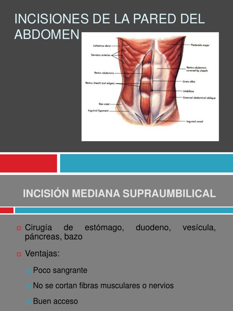 abdominal y la entrada en la pared. peritoneal para realizar una. intervención sobre los órganos. abdominales. Diéresis de la piel. Diéresis de tejido celular subcutáneo. Diéresis de aponeurosis del músculo. Apertura del peritoneo. Tipos de incisiones abdominales.