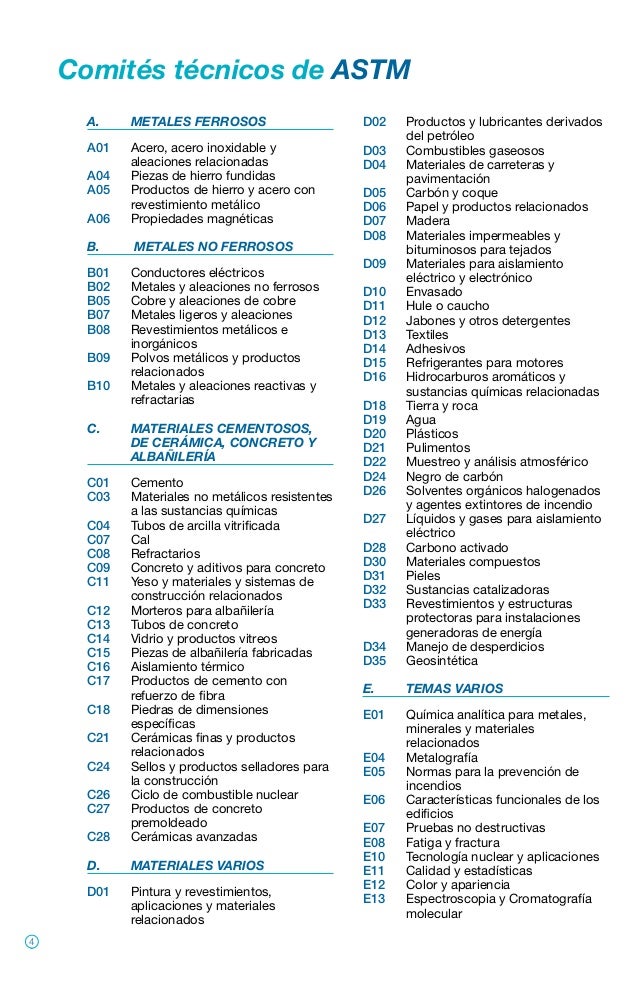 Normas ASTM sobre metales en español. Con más de 30.000 miembros voluntarios de más de 140 países, la ASTM desempeña un papel fundamental en el establecimiento de normas que garanticen la calidad y la seguridad de los materiales en diversos sectores, como los metales, la construcción, los plásticos, los textiles y el petróleo.. Las normas de seguridad ASTM son esenciales para evaluar.