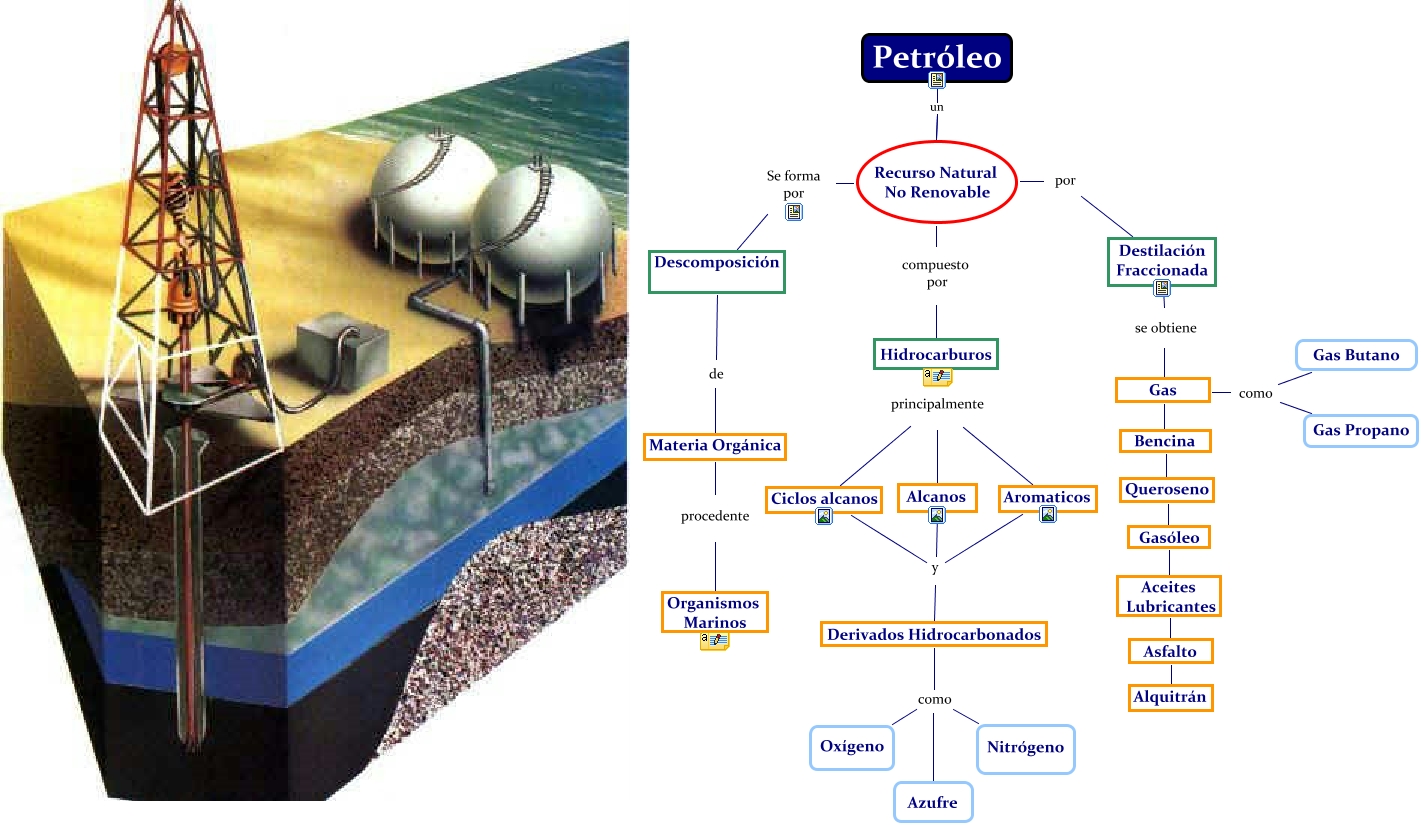 El petróleo es una mezcla heterogénea de hidrocarburos (compuestos de hidrógeno y carbono) insoluble en agua. Es de origen orgánico, fósil, fruto de la transformación de materia orgánica procedente de zooplancton y algas, que depositados en grandes cantidades en fondos anóxicos de mares o zonas lacustres del pasado geológico, fueron posteriormente enterrados bajo pesadas capas de.