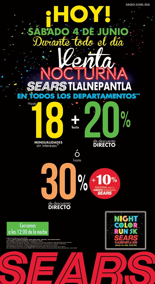 Sears México on Twitter "¡Hoy! Venta Nocturna Sears Tlalnepantla en todos los departamentos.